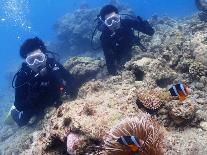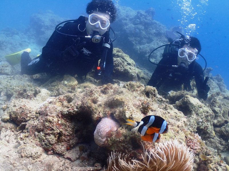 今週末に奄美直撃の予報だった台風19号は、結局奄美にはこない感じで~す♪めでたしでございます!本日は会社の同僚4名様の体験ダイビングをご案内しました。