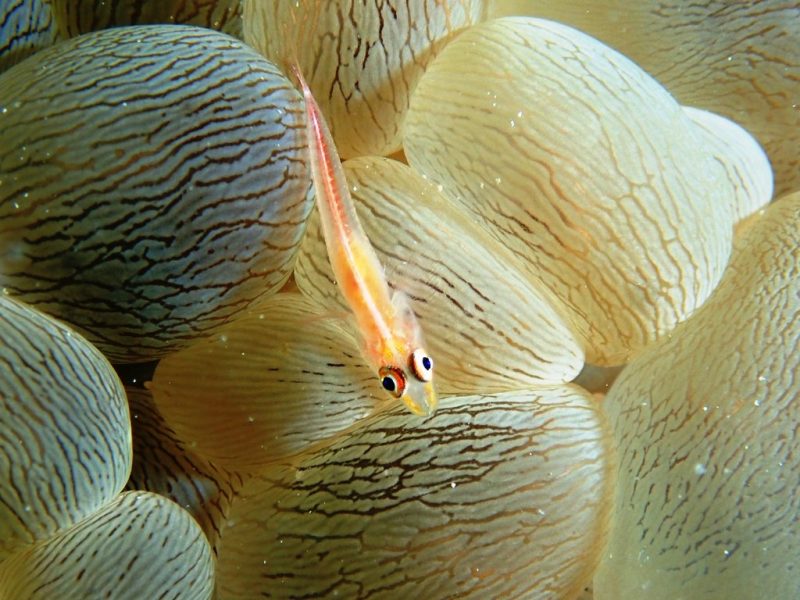 昨日ご紹介したバブルコーラルシュリンプと同様にミズタマサンゴにチョコンと乗っていることが多いハゼです。体の中心に赤い筋が入っているので「アカスジ」でございます。このハゼ、可愛らしくて結構好きです♥