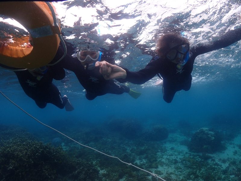 そんな雨が続いていますが、海の中は少し白いだけでどうにか念願のウミガメスノーケルを開催できました♪