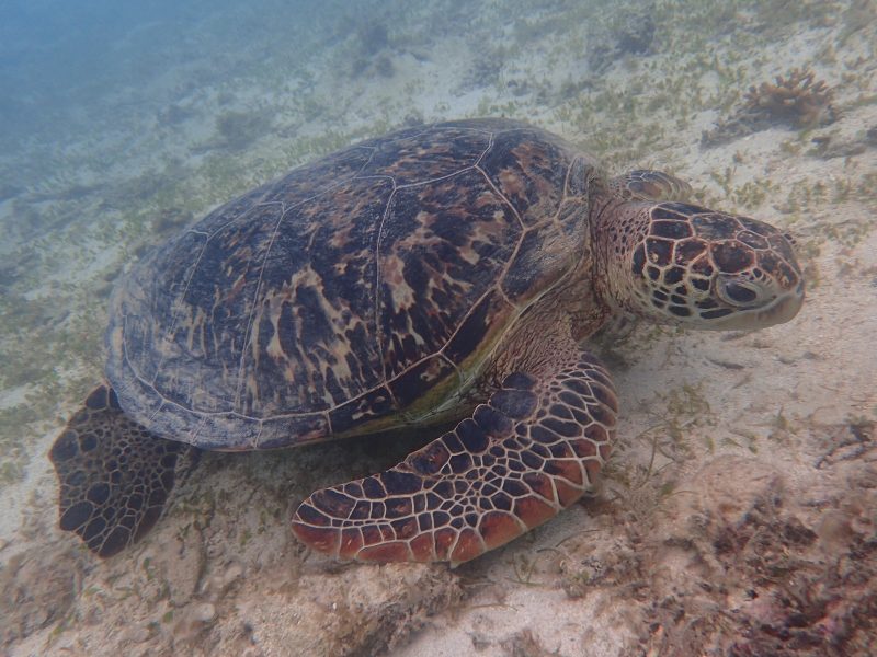砂地の上で休んでいたウミガメ。近づいても全然逃げず、穏やかな表情がたまらなく可愛い\(^o^)/