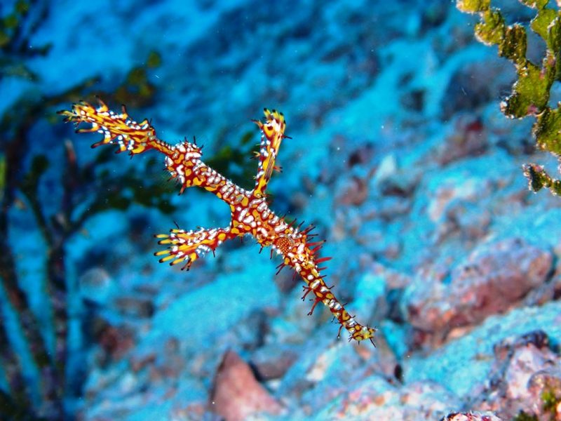 いつも頭を斜め下に向け、静かに漂っています。これは、藻や枯れ葉のように見せかける為に体を隠し、カモフラージュすると言われております。あまり動かないので撮影しやすいです。カメラを始めたばかりの方にもオススメの被写体で~す!