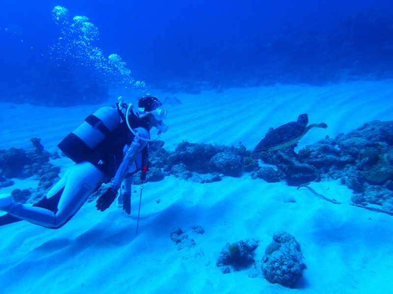 ボートポイントでは珍しい、ウミガメとの遭遇。ラッキーでしたね~♪