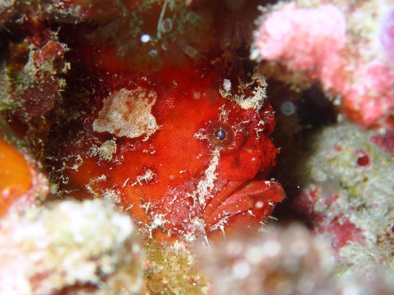ワイドもいいですが、やはりマクロも!このカエルアンコウはずっと同じサンゴの奥の場所におります。体が成長しすぎてサンゴからでれなくなった説が有力です!(笑)