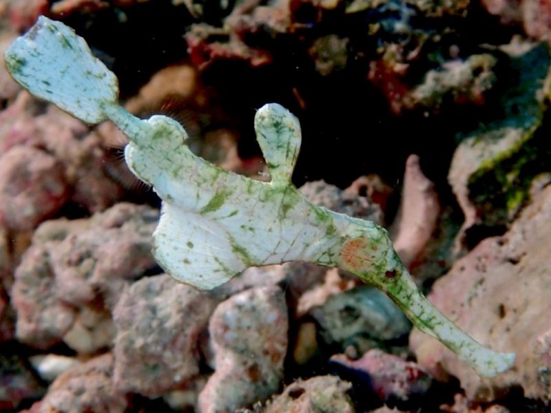 擬態のプロ!ホソフウライウオ!以前は同じ場所にニシキフウライウオがいましたが、いつの間にかこの子に代わってました(笑)水底によくある生えもののように上手く擬態してますね。こんな色にもなることに思わず関心しちゃいます!ふうらいというだけあってそのうちどこかに行ってしまいますが、しばらくは居てほしいですね~。
