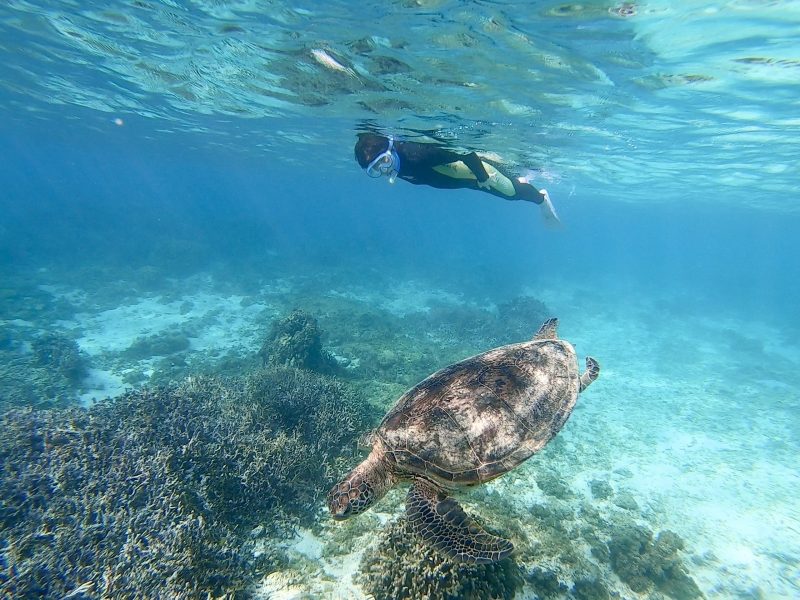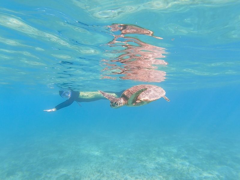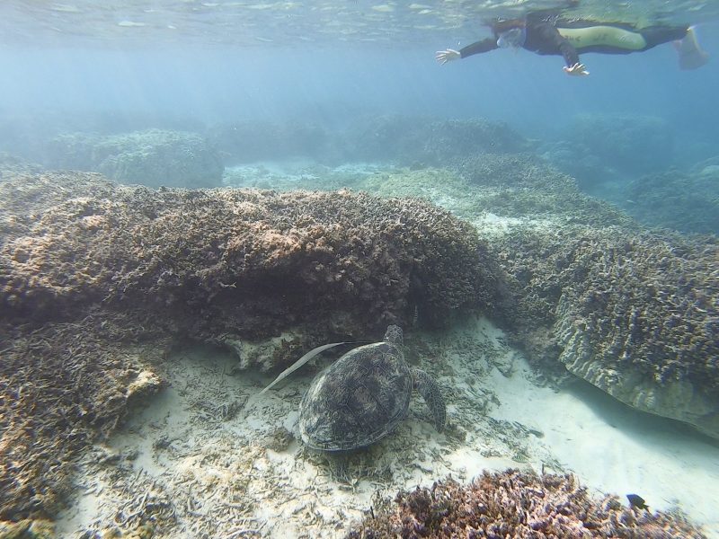 最初に目に入ってきたのは、水面近くを呼吸しながら泳いでいたウミガメ。