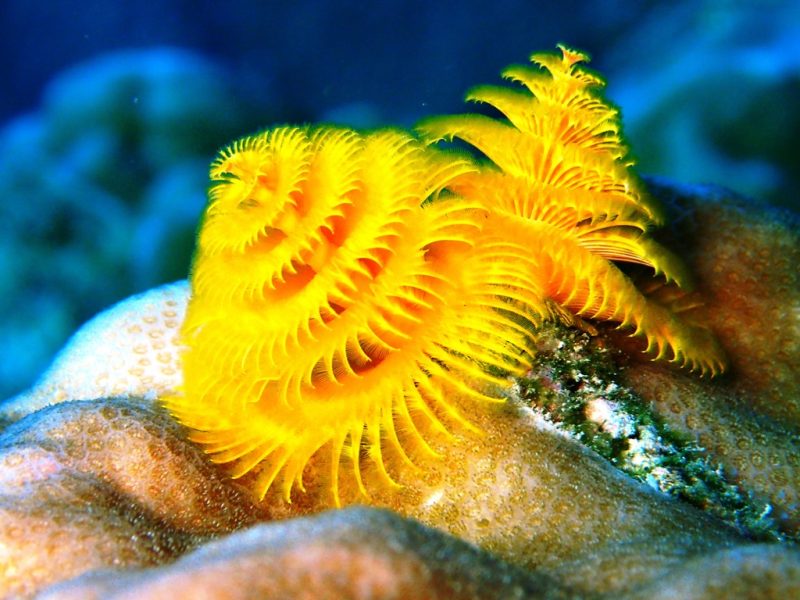 英名は「クリスマスツリー・ワーム」。もうすぐクリスマスなのでご紹介しておきま~す!多毛類(ゴカイ類)の動物です。触ろうとするとシュッとサンゴの中に隠れます。