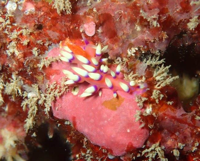 ピンク、紫、白と様々な色を持つ姿は、艶やか(あでやか)という表現がピッタリ!とても美しいウミウシです!