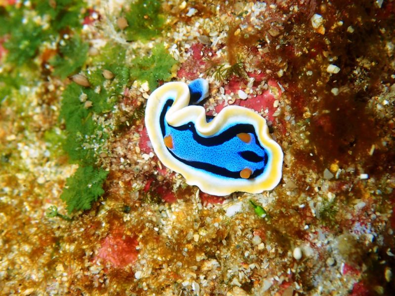 発見者の一人であるアンナさん(Anna)にちなんで名付けられたものだそうです。白・青・黄色の模様がとても綺麗なウミウシです。