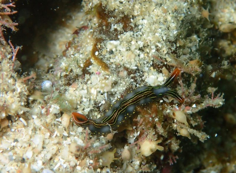 ミドリガイ系もご紹介したいな~と思っていたら、おりました!大きな特徴は背中に両側対象に並ぶ薄~い白丸模様。浅場にいる事が多く、今日も浅い場所にいました!それ以外にもシロタエイロやムカデミノ等などたくさんご覧頂きました~♪