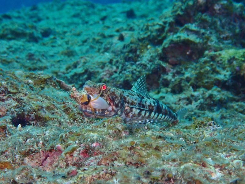 何をくわえているのかと思えばハタタテギンポを捕食しているではないですか?!