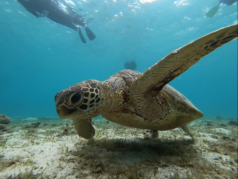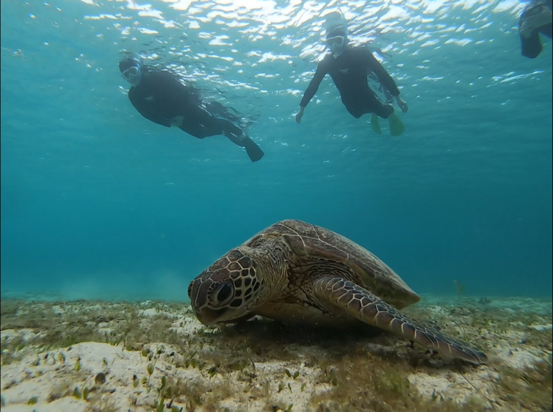 餌を食べる姿から水面に上がってきて呼吸する姿までいろんな姿を見れるのがウミガメシュノーケルの楽しいところ!!