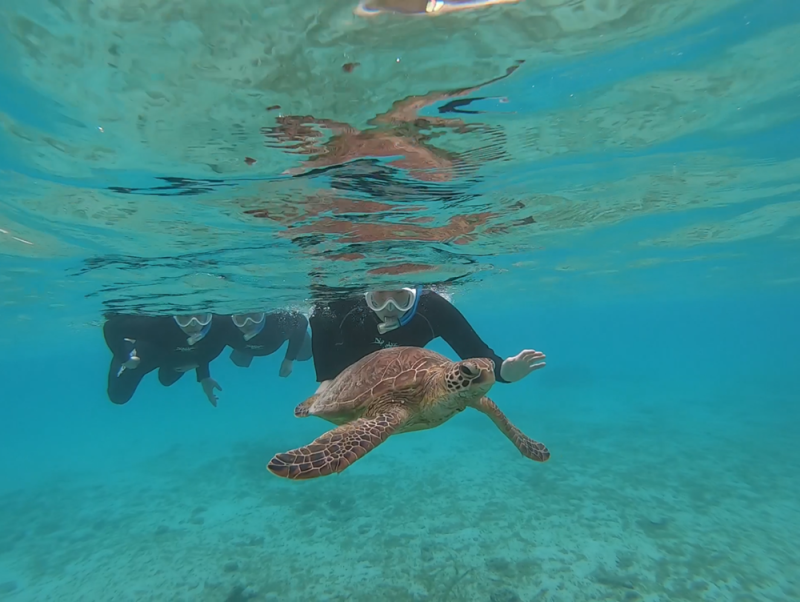 その一方、ウミガメシュノーケルは少し揺られながらではありましたが無事に開催することができました!