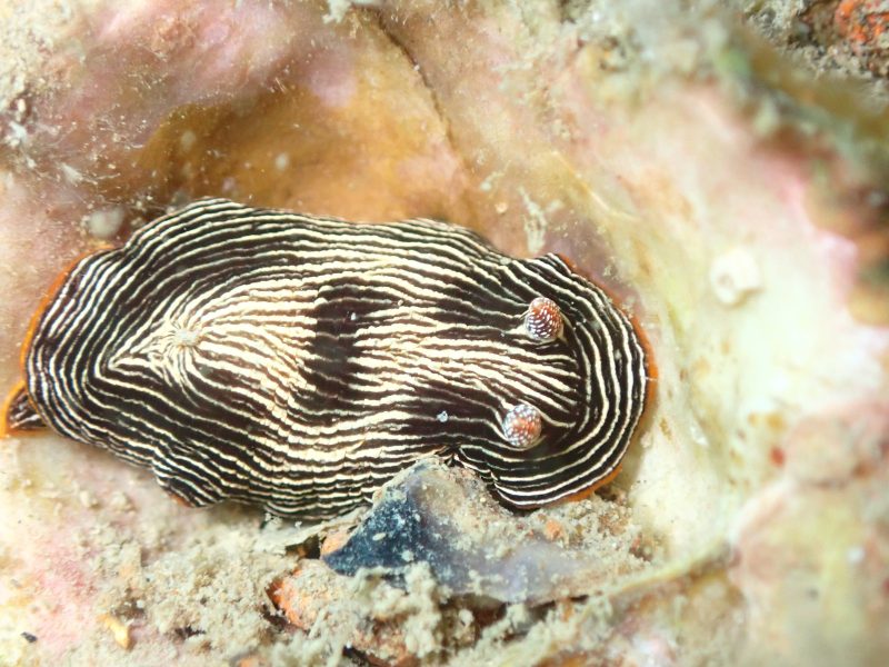 初めて見たウミウシだなぁと思って調べたらオシャレオトメウミウシだと。確かにおしゃれな感じのカラーしてますよね♪