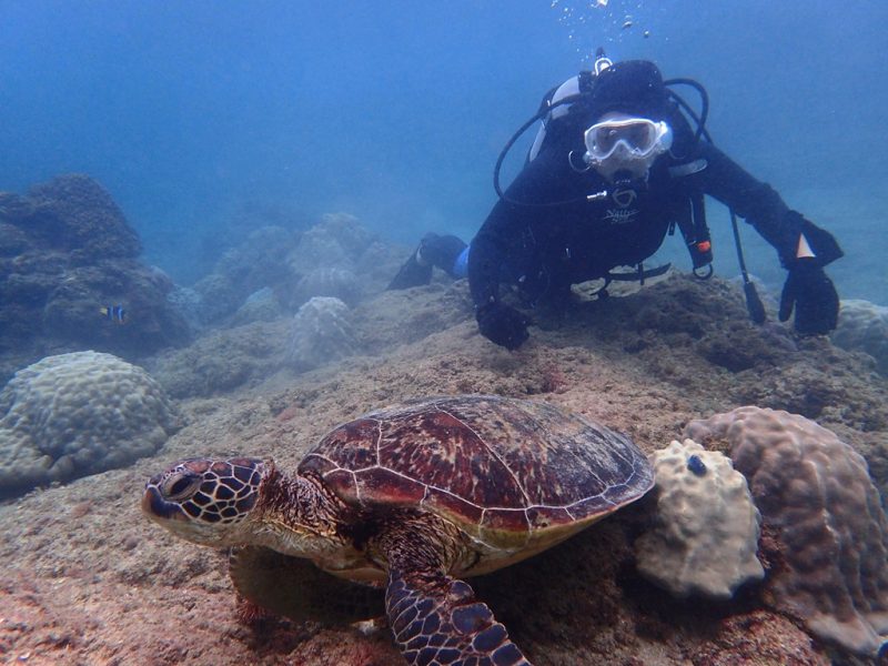 耳抜きも呼吸もバッチリ!とってもお上手でした。エントリー後すぐにまの前にウミカメが2個体!