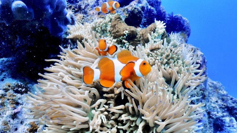 カクレクマノミも比較的浅い水深に居るので水面からでもしっかり見る事が出来ます。