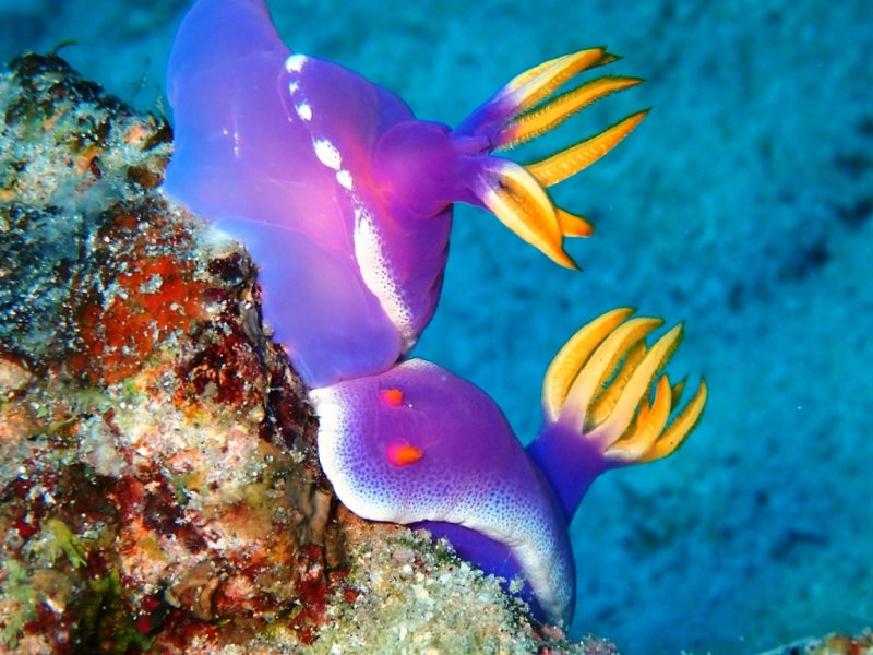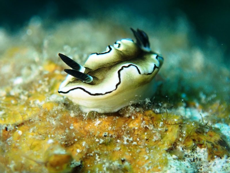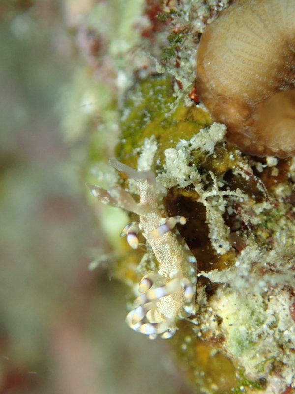 名前の通り、ミノの表面に白い点々(白点)が散りばめられているのが最大の特徴です。奄美大島周辺のような温暖な海域では通年見かけるチャンスがありますが、特に春先などはウミウシの個体数が増えるため、じっくりフォト派のダイビングを楽しむには最高の被写体です。