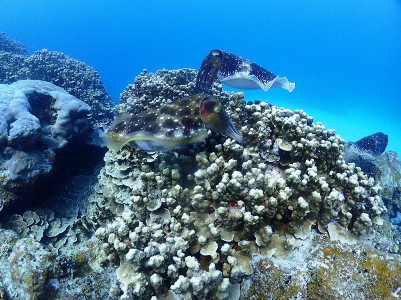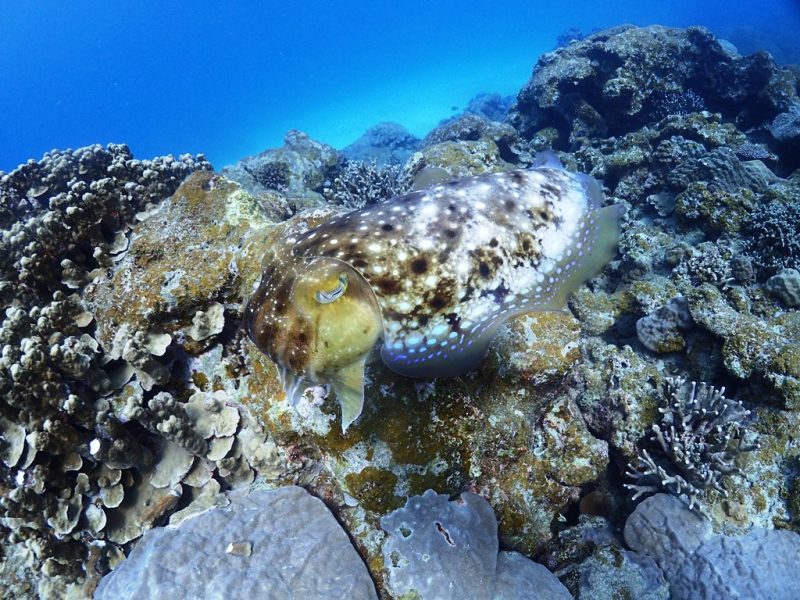こちらが水玉模様のメス。オスは他のオスからメスを守るために威嚇したり、メスの産卵に付き添ったりで、あっちへいったりこっちへいったりで大忙しな感じでした。