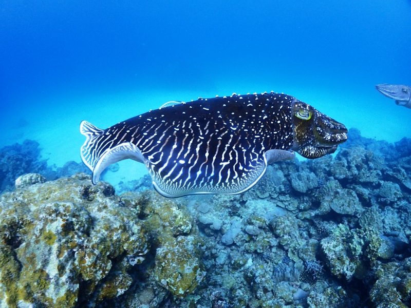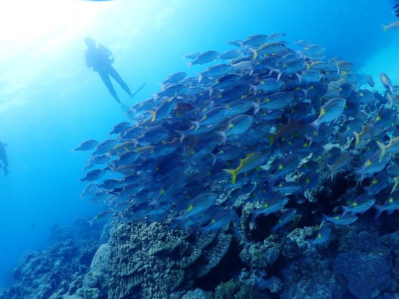もちろん魚もご紹介しました。最近、数が多いような気がします。気がするだけですね。ギンガメアジの群れ(通称「ギンガメトルネード」)にも負けないこの迫力!これを勝手に「ノコギリトルネード」と呼んでご紹介しております!