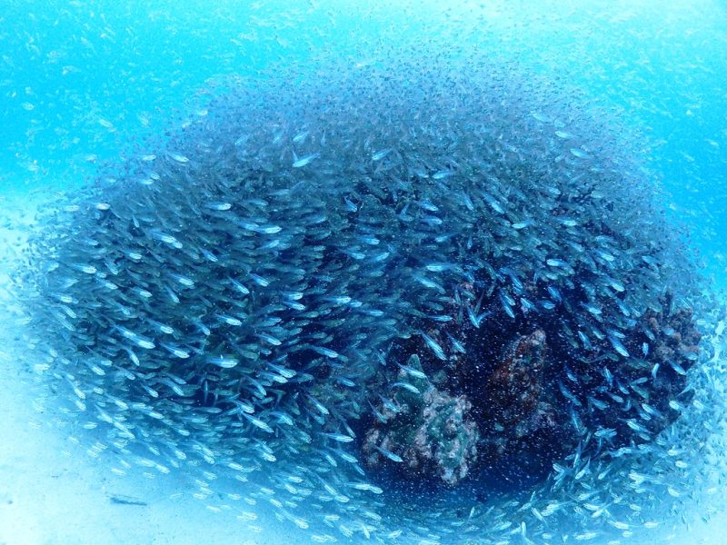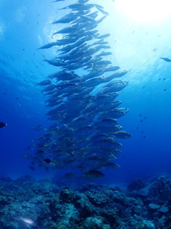 こちらはノコギリダイの「ノコギリトルネード」。隣でアカヒメジもトルネードしており、なかなかの迫力でございます!