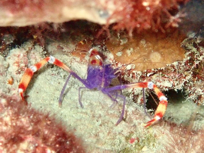 昨年までは、探すのが結構大変だったんですが、今年はなんだか増えております!しかもこれまではサンゴの凹みの奥にいて、ライトをあてるとすぐに引っ込んじゃっていましたが、今は結構グイグイ出てきてくれております。「あれ?ここにもいるの?あ!ここにも!」てな感じでご覧いただけますのでエビ好きの方、今がチャンスですよ~!!