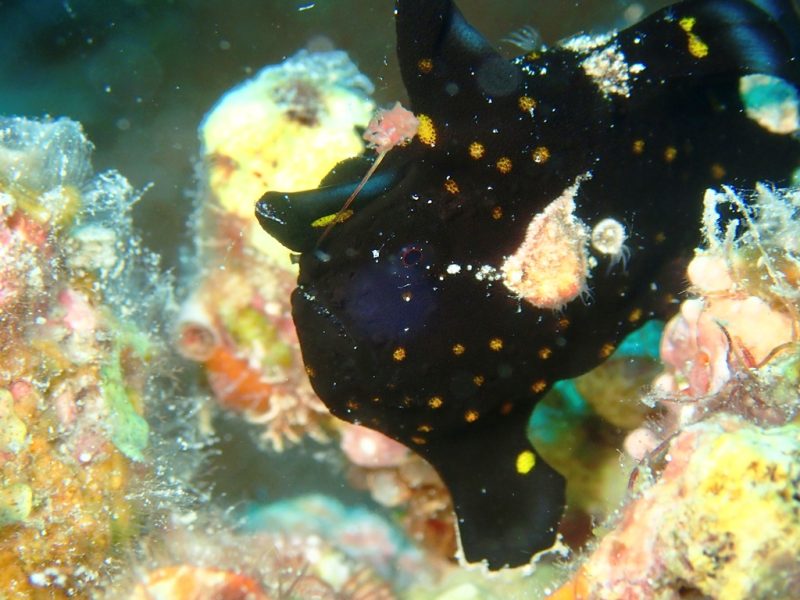 こちらは今シーズンのニューフェイス!黒いクマドリカエルアンコウ、通称「クロクマくん」でございます。これはマクロ好きには堪らない被写体です