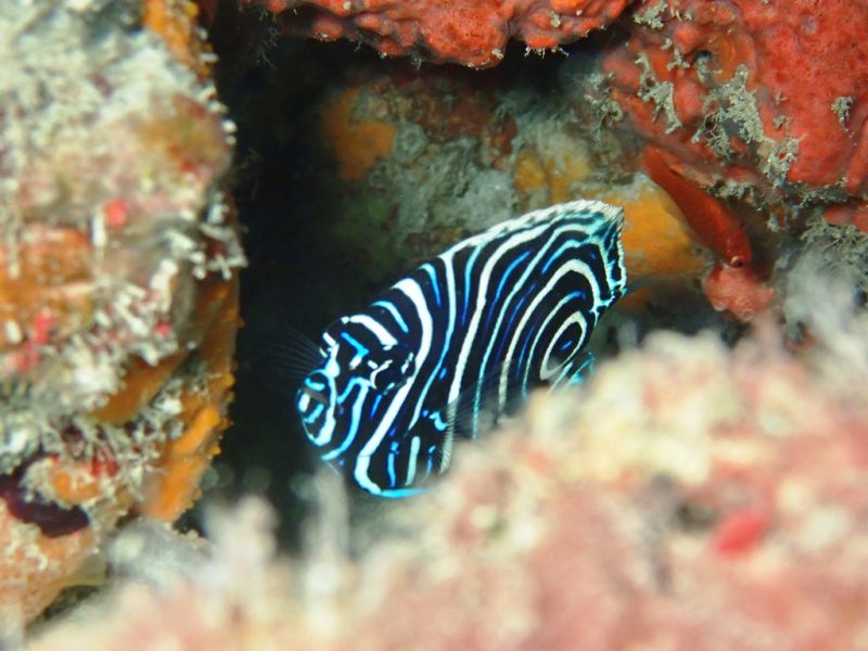 こちらの通称は「タテキン(の幼魚)」です。他を寄せ付けない圧倒的に映える模様と色彩!でも、幼魚は外敵から身を守るために岩の隙間や奥まった場所に単独で潜んでいることが多くてヒラヒラとあっちへ行ったり、こっちへ行ったりします。撮影するのが難しいんですよね…。なのでファインダーに収まると「やった!」ってなります!